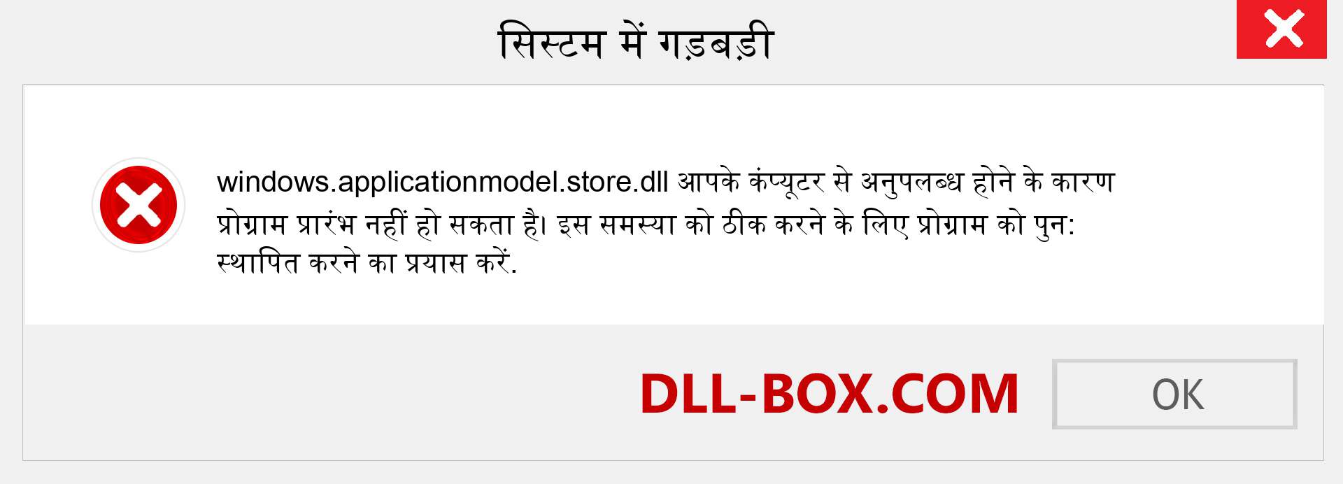 1. प्रोग्राम प्रारंभ नहीं हो सकता क्योंकि आपके कंप्यूटर से windows.applicationmodel.store.dll गायब है। इस समस्या को ठीक करने के लिए प्रोग्राम को पुनर्स्थापित करने का प्रयास करें।